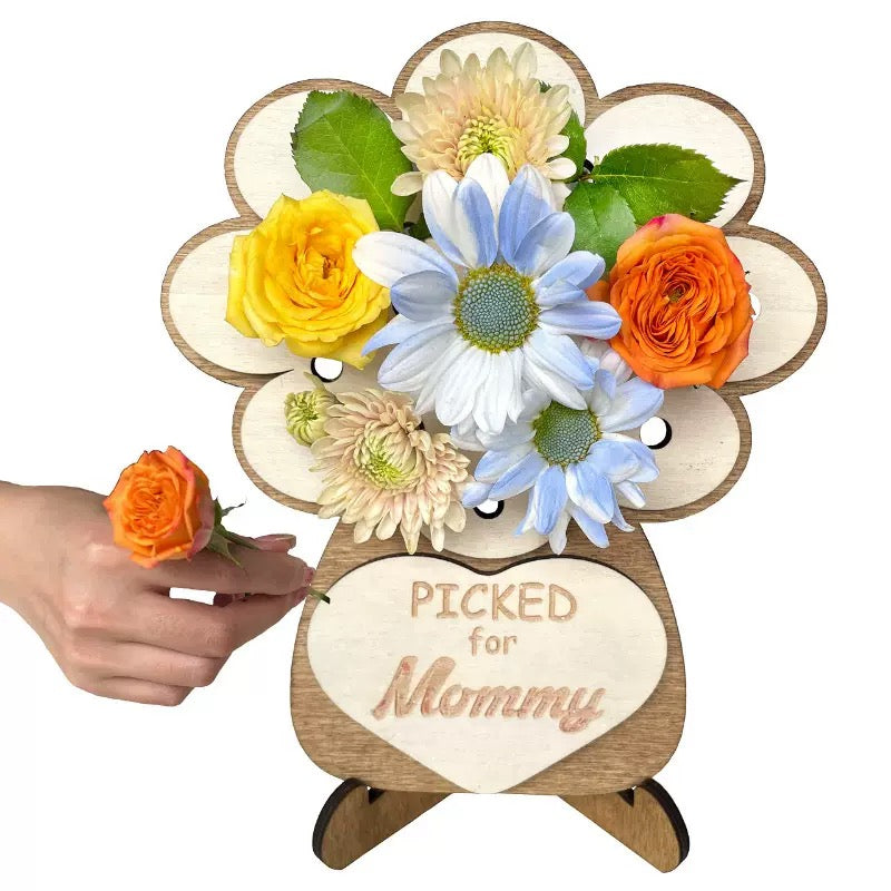 9. En guise de remerciement spécial, nous avons inclus un porte-fleurs "Cueillis pour Maman" pour célébrer votre travail acharné.