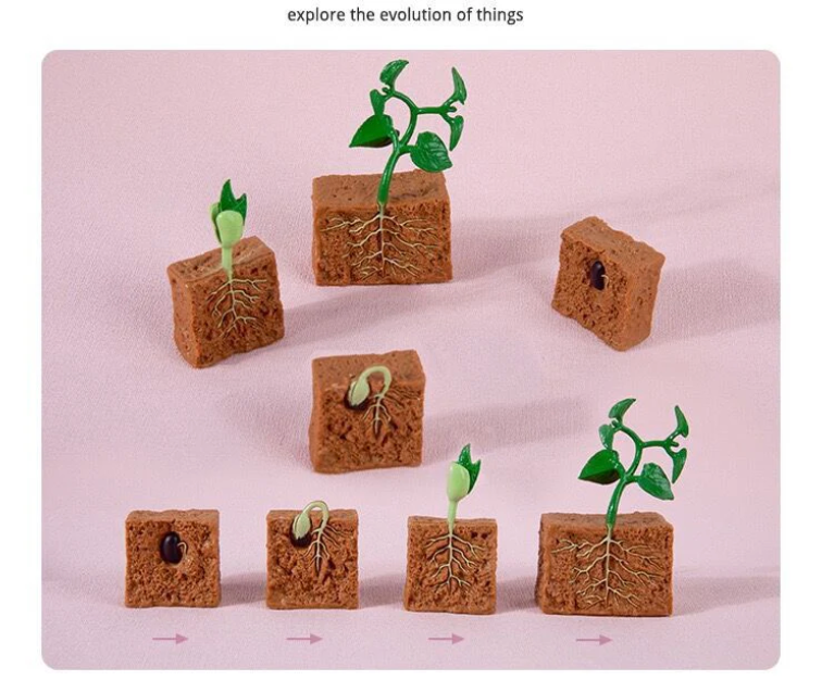 3. Sciences : Un kit de plantation pratique avec un pot transparent, de la terre et des graines. Le kit comprend également un ensemble de figurines du cycle de vie des plantes en 4 parties et 3 activités connexes tirées du livre d'activités.
